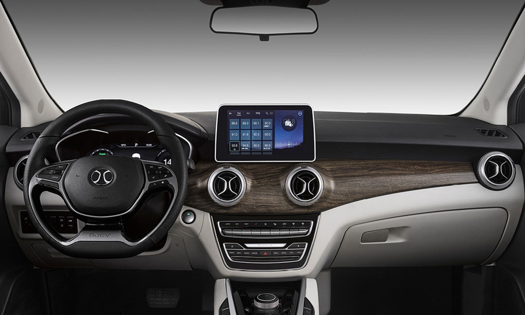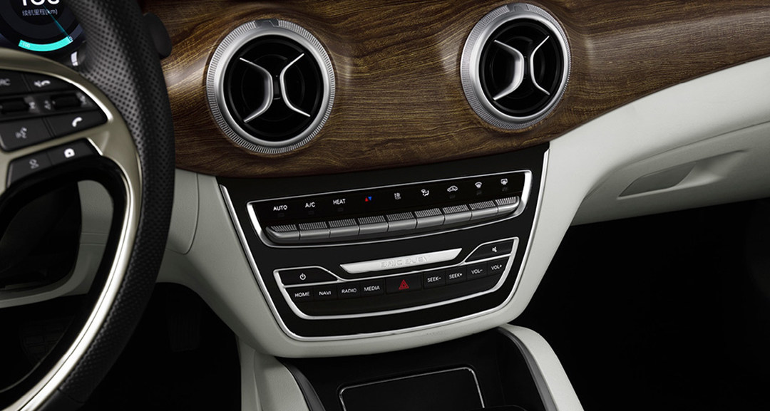 内饰部分则和全新绅宝D50有着异曲同工之处,采用上深下浅的颜色搭配,仿桃木饰板横穿整块中控台,并采用悬浮式式中控屏幕,物理按键的操作区域则放在空调出风口的下方,与旋钮式挡把相近,增加了操作的便利性。且钢琴烤漆和镀铬饰条的点缀,令这套内饰显得精致醒目,空调出风口也延续了航空发动机造型,这是北汽一贯的风格。