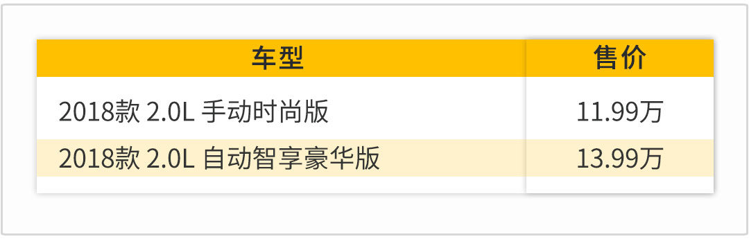 当我们看到东风悦达全新一代智跑的外观造型,整体颜值比起旧款提高不少,但万万想不到新车上市后,居然只有两款车型可选,售价区间为11.99-13.99万,两款车型都搭载2.0L自然吸气发动机,但分别配备6MT和6AT的变速箱,价格相差两万,只是变速箱不同吗?新车是否值得入手,我们一起来了解一下。