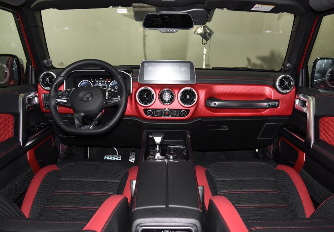 BJ40 PLUS的内饰利用了全新的设计风格。其中,悬浮式10英寸中控屏、12.3英寸全液晶仪表、三幅式平底方向盘都时下非常流行的元素。一键启动的按键布置在两个出风口的中间,设计非常独特。虽然BJ40 PLUS的内饰依旧保持着简约的风格,但在此还增添了一丝豪华气息。