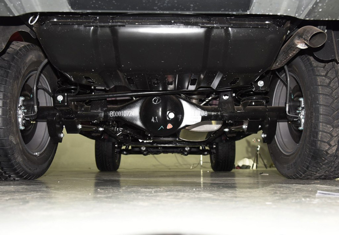 再有就是BJ40 PLUS的悬架结构有做了小改变,前悬架从双横臂式扭杆弹簧独立悬架变为双横比是螺旋弹簧独立悬架,这更有利于舒适性的提升与更便于改装,而后悬架没有变化,依然是五连杆螺旋弹簧非独立悬架。