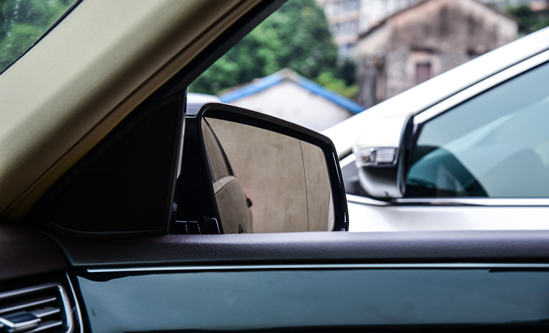 同样没有在配置表里标明的,还有奔驰的后视镜自动向下翻折功能。不过后视镜只有右侧一侧能向下翻折,作用是在倒车时为驾驶员减小盲区,配合上双曲率后视镜,观察更多地面情况。