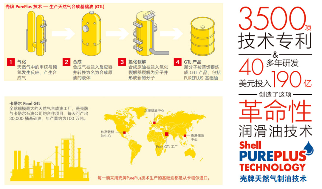 但是有一家公司,跟法拉利F1车队是近70年的“好激友”,一起研发润滑油用于F1赛事。2017年数据显示,他已经在全球润滑油销量冠军的宝座上坐了整整11年。这就是拥有大量天然气资源的荷兰皇家壳牌集团。壳牌找到一个新的方法去生产纯度更高的基础油,称为“PurePlus”天然气制油技术。由于一般天然气纯度更高,因此提炼成基础油之后分子链更强、粘度更低、纯度也能高达99.5%,可以说是低粘度机油的最佳基础油。