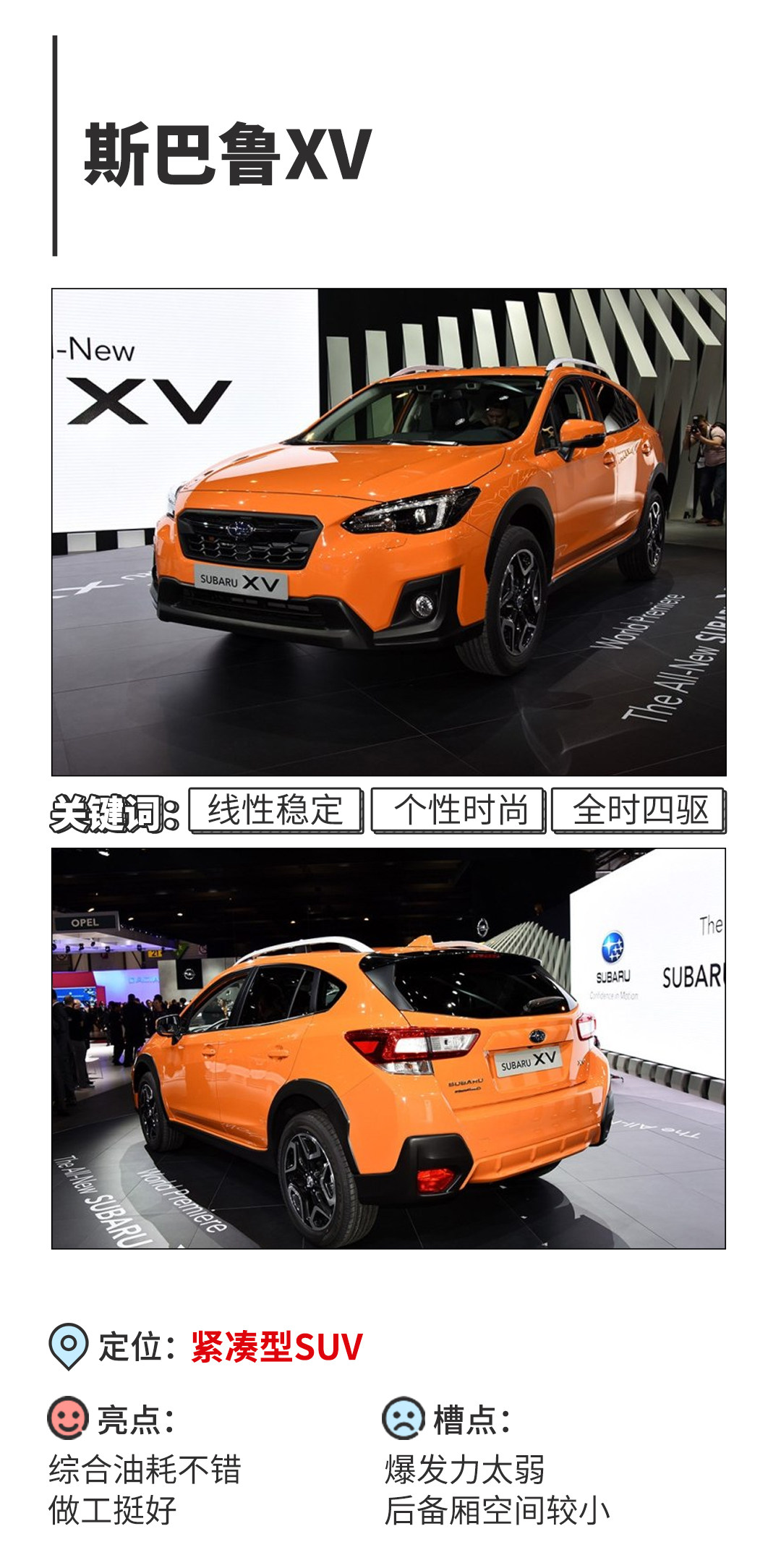 教授辣评:XV的内饰运用较多的线条,看着很显档次感,视觉效果也更好,遗憾的是并未配置全景天窗。动力方面XV搭载2.0L+CVT的动力总成,没有太强的爆发力,加速过程很平淡但是力度很稳;另外XV全系都搭载了全时四驱系统,在正常情况下的前后轮动力分配为7:3,根据路况可随时调节扭力分配,可靠与实用性更好,而全新的工艺技术则令底盘的抗刚性和横向抗刚挠性均得到提升。