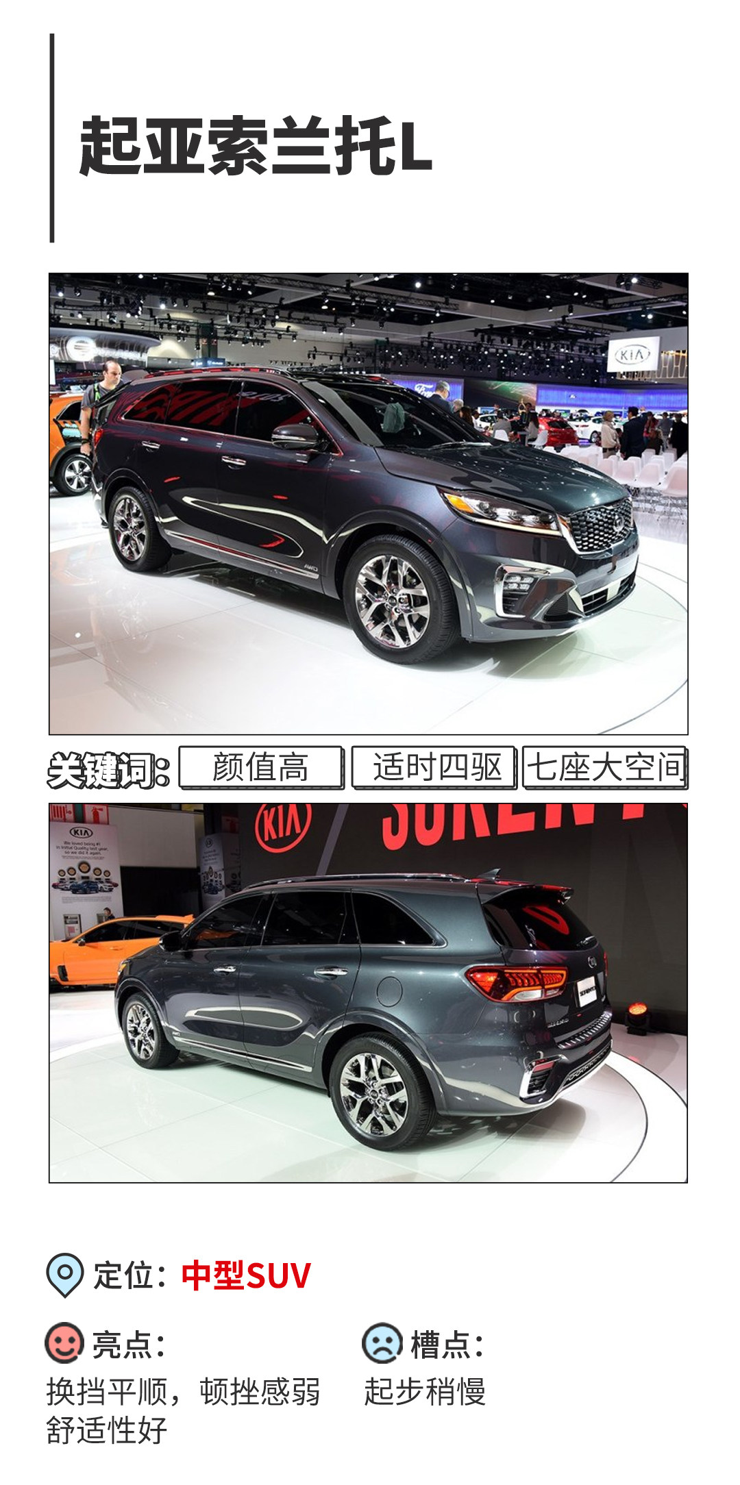 教授辣评:索兰托L成熟稳重的外貌吸引了不少的消费者,作为中型SUV的它,基本不用担心乘坐空间的问题,而同级别车不多见的全景天窗,对7座的SUV来说算是福利,毕竟有了它第三排的乘客不会觉得太压抑。动力搭载2.0T和2.4L两款引擎,其中2.0T版本的关注度比较高,虽也搭载了适时四驱系统,但这套系统的作用也只是在雨雪湿滑道路上提高了车子的稳定性和行驶安全性。