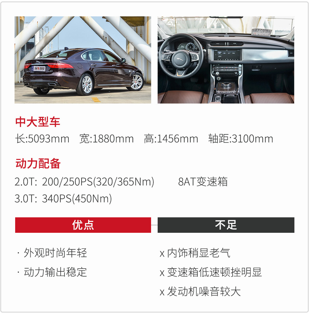 沃尔沃S90有着很浓的北欧风格,世界上最安全的车的品牌之一这个名号也不是吹的,比起“德国三宝”,S90更有点小资的感觉,如果生活不需要BBA这种品牌去给撑面子、当敲门砖的话,就是自己用又能表现自己有品位等等,可以看看S90;为什么会有那首开头就是“Baby,get on my Cadillac”的歌?我想着这就是凯迪拉克给人的印象,CT6带有浓厚美国豪华轿车的色彩,霸气依旧,但是多了一些细致的感觉。;XFL在外形上符合年轻人的口味,动力数据、车身尺寸很有竞争力,但进入车内却给人一种过于沉稳的驾驶氛围,使得只能满足一些具有“小众情怀”的人群,当然,选择了XFL这车就都足以成为一种个人实力的象征。