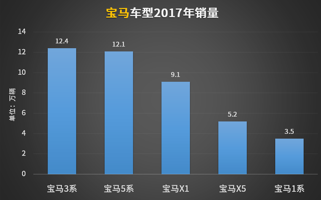 排在销量第三名的是宝马,在2017年中3系与5系的销量基本持平: