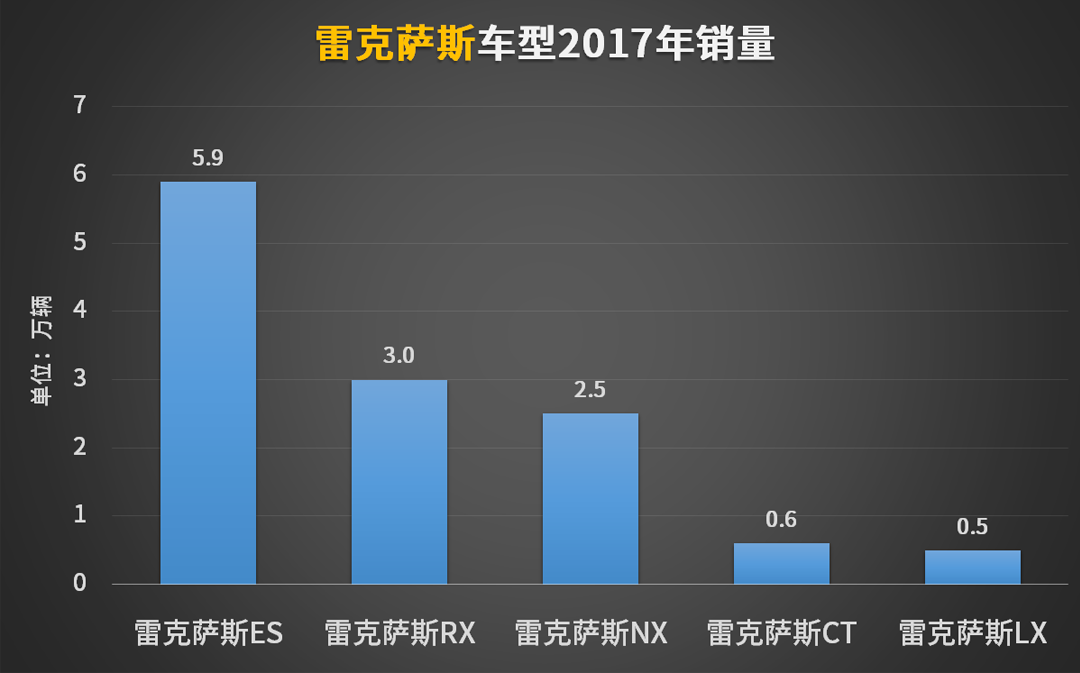 雷克萨斯的表现其实令教授挺惊喜的,其中雷克萨斯ES车型占据了全系近乎一半的销量: