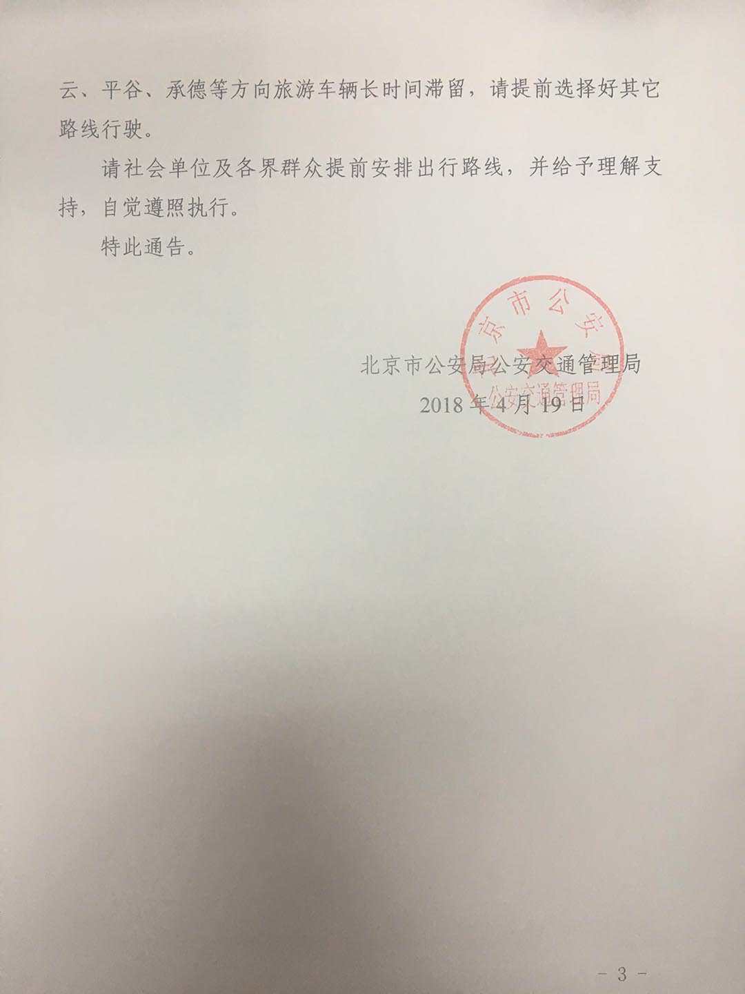 请社会单位及各界群众提前安排出行路线,并给予理解支持,自觉遵照执行。