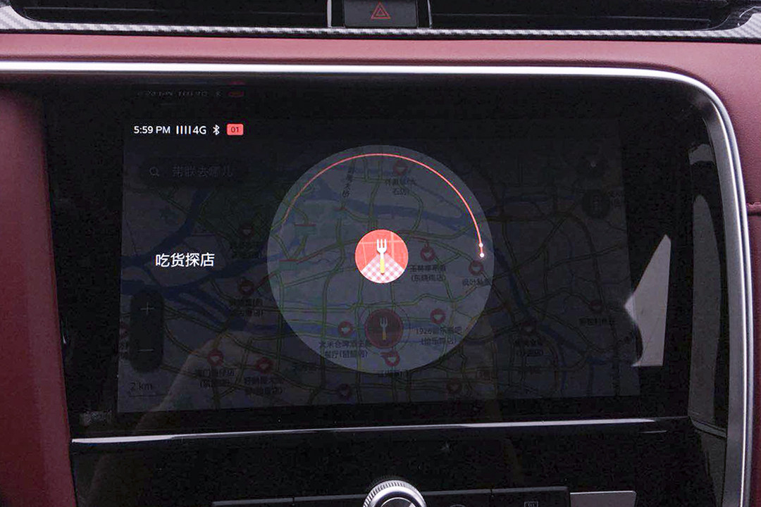在导航的界面下,可以切换到吃货探店模式的地图,导航上显示各式各样的人气美食店,这都是美食达人推荐的餐厅,通过语音控制导航即可到达。