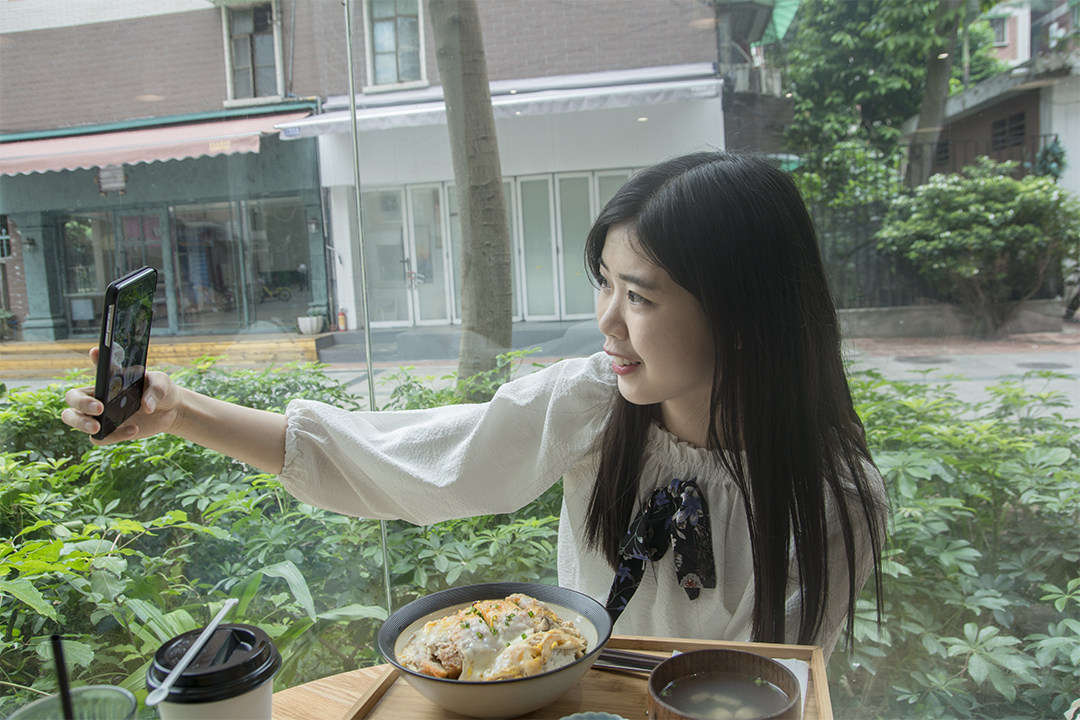 等了将近1个小时,我终于吃上了网红店的饭了。菜品上来后当然是先来一张自拍呀~