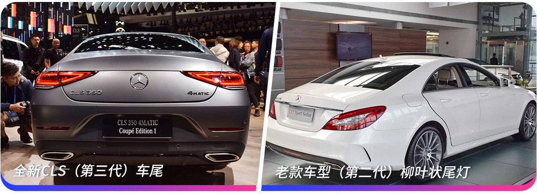 来到车尾,二代CLS上最为标志性的柳叶状尾灯造型也被取消,取而代之的是一对类似倒三角式的平切造型,因此老款上柳叶状尾灯所塑造的优雅流线造型也一并被注重横向视觉效果延伸的新车尾所取代,孰优孰劣还请各位评判。