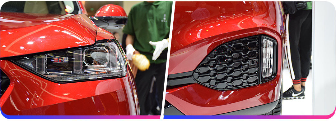 先看外观上,依旧是六边形的大嘴式中网格栅,前大灯组内部三根竖条样式日间行车灯,再加上底部两侧雾灯处的双C型设计,WEY VV6前脸统统延续了其标志性的家族式设计。