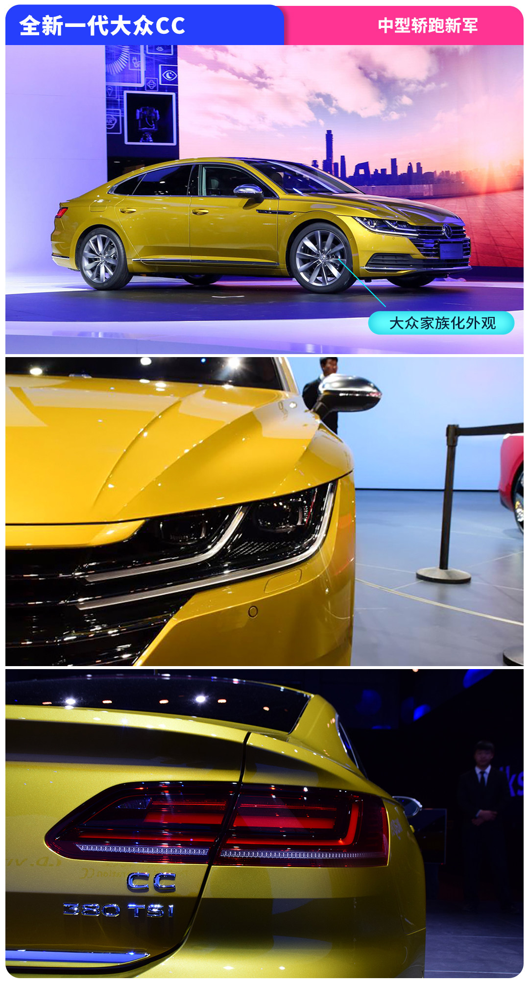 外观部分是全新大众CC的最大亮点,本届车展的登台亮相,仿佛时光一下子回到多年之前,当时“大众CC”的亮相红极一时,捕获了多少80后年轻人。而来到这一代车型,其外观依旧有令人尖叫的冲动,不仅保留了上一代车型的无框车门以及溜背造型,前脸巧妙地将镀铬、格栅和大灯组合在一起,搭配隆起的发动机盖的肌肉线条,营造出大众独有的运动化效果。