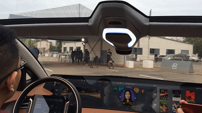 说到拜腾概念车的隐藏式车门把手,该如何进入车内?答案就是在B柱上的三颗脸部识别摄像头及开门按键,可以自动识别每位乘客的拜腾ID,并调整好合适坐姿及各类个性化设置;至于在车顶尾部的隐藏式天线,取代了传统小小的鲨鱼鳍天线,好处便是在车内便可享受高达10 Gbit/s带宽,远期更可全面支持5G时代。