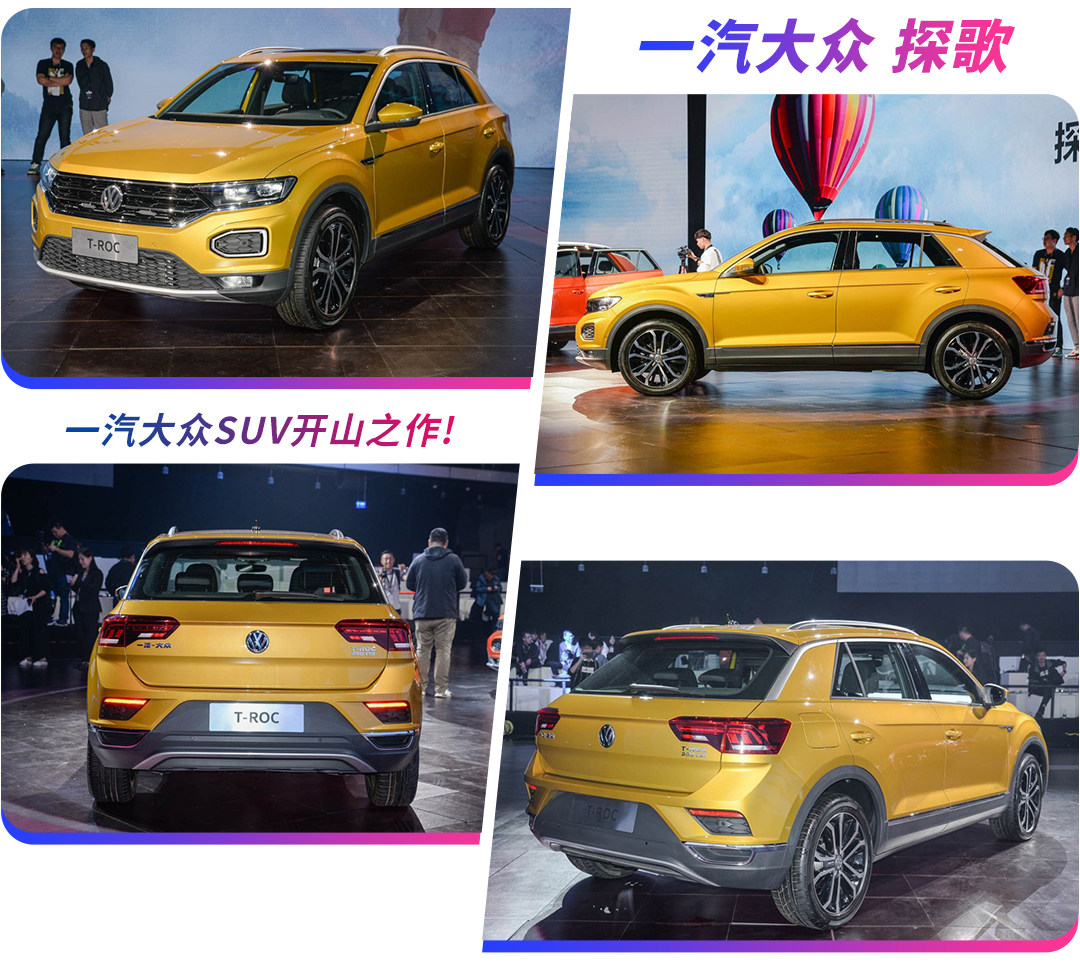 这辆刚刚公布中文名为探歌的一汽-大众首款SUV——T-ROC在引入国产后进一步加长,长宽高分别达到了4318/1819/1582mm,轴距2680mm,除了轴距略有优势,其他方面稍逊色于日产逍客。与朗逸Plus相似的是它的设计相比其他在售的大众车型可谓颠覆,整体风格更为年轻现代化,官方直言这是“一汽-大众为年轻人打造的第一款纯正德系SUV”。