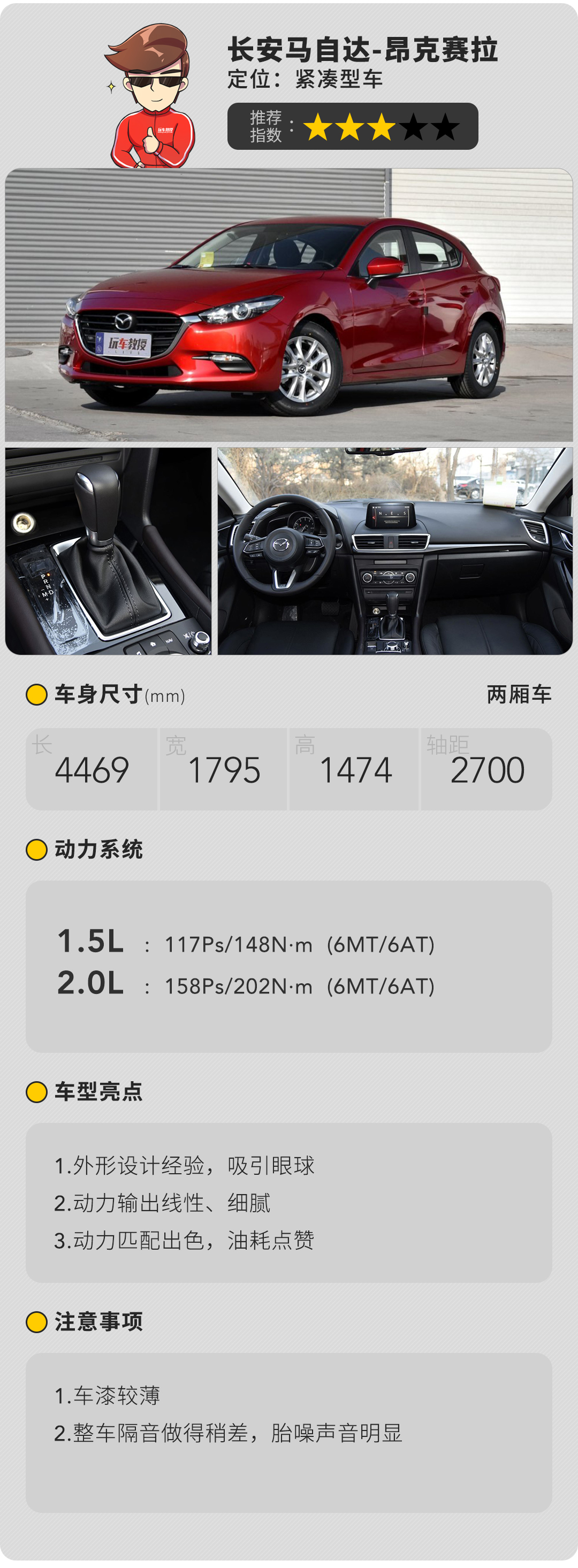 纵观目前中国汽车市场,自吸的车型是越来越买少见少,在涡轮发动机大行其道的今天,马自达依然坚持使用自吸发动机使得大家不用一聊起天就开始讲“情怀”。“魂动”设计理念以猎豹在奔跑中的姿态为灵感,造型风格前卫而富有运动感,在同级车型中有着独树一帜的存在,购买年龄里很多都是不超过30岁的年轻人,这也很符合这款车的定位。动力在账面参数看昂克赛拉基本不如同级别车型,但自吸发动机给的平顺和线性是其他都涡轮车给不了的,再搭配6AT变速箱,操控乐趣可想而知。