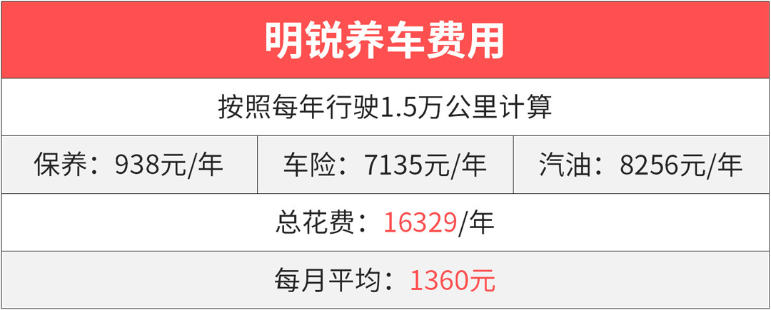 这一次首付是5万,咱们也豪气一把,选1.6L自动舒适型,裸车+购置税=120018元,每月应还贷1353,再加上每月养车费用1360元,总数为2713元。似乎还没有到每个月都要吃土的地步,如果你需要一辆车提升生活的品质,明锐无疑是个好的选择。