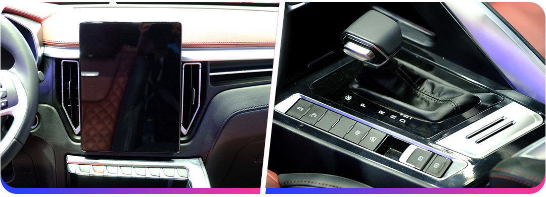 而最吸引眼球12英寸超大悬浮式中央触控大屏与12.3英寸全液晶仪表,中控大屏比荣威RX5的10.4英寸还要大,无论是科技感还是档次感都非常出色。可惜车展现场没能看到大屏和液晶仪表盘点亮的效果,但从效果图来看还是很赞的。