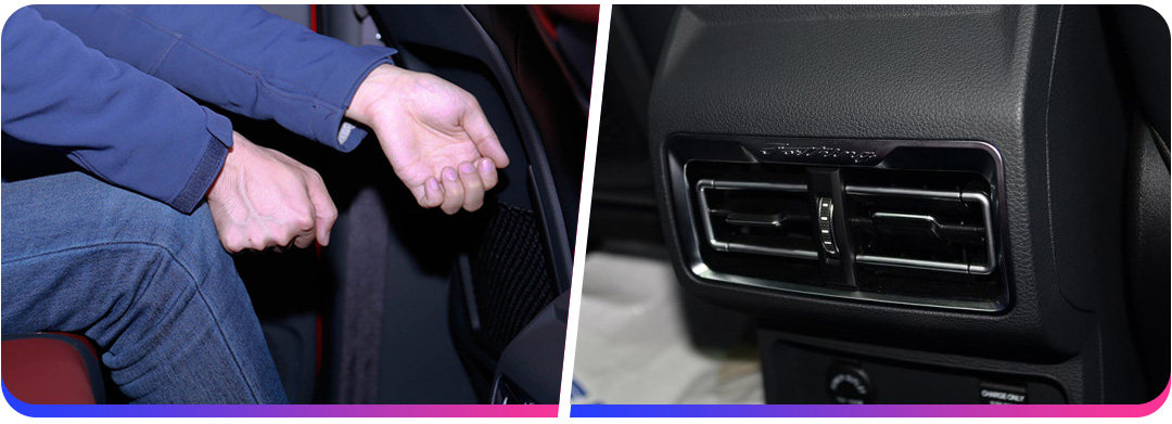 风行T5虽然定位为紧凑型SUV,但车长为4530mm,轴距达到了2720mm,空间表现自然不会差。以身高4375px的体验者来看,后排有接近3拳的腿部空间,并不输一般的中型SUV。同时后排中央座椅带有头枕,座椅很厚实,填充物比较柔软,坐垫也比较长,对大腿承托效果很明显,后排也还有空调出风口,底部还设计了12V电源和USB接口,这个配置对于后排乘客来说还是很好用的,细节方面做得很好。