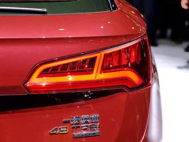 灯的造型也是奥迪的拿手绝活,全新奥迪Q5L采用了全新的大灯设计,两个L型的LED日行灯,辨识度极高,自适应远光等功能把科技武装到全身;尾灯设计也是一大亮点,现款的尾灯其实是很耐看的,全新奥迪Q5L的尾灯更加平直,分段的LED形状有棱有角,变得又耐看又有科技感了。
