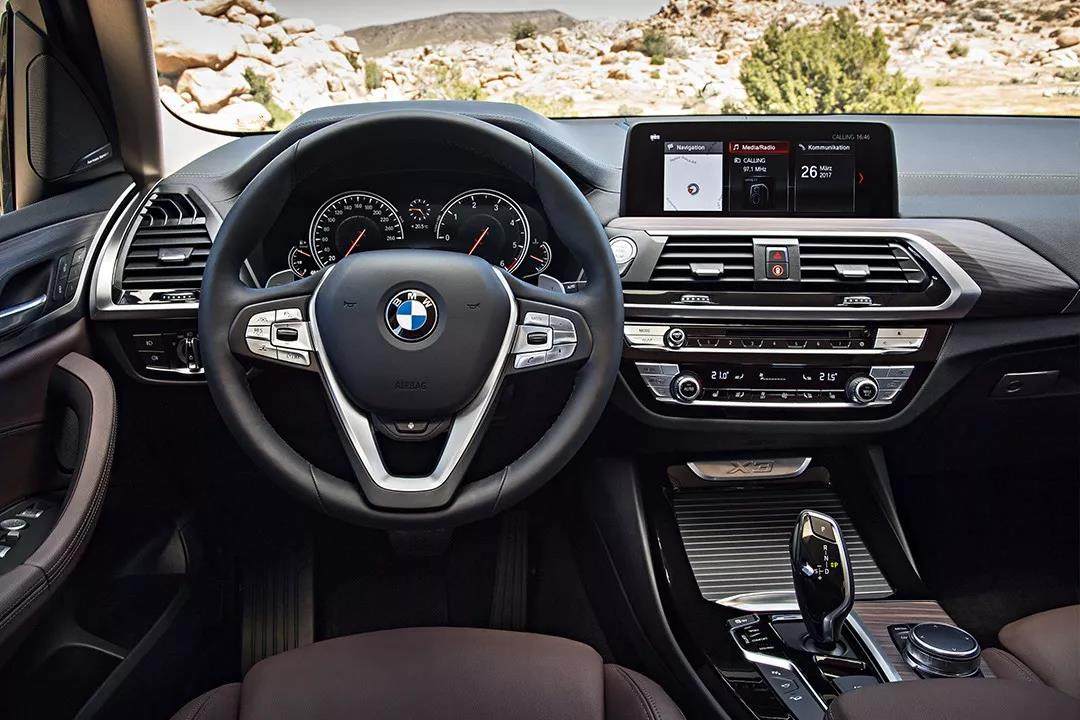 X3的内饰同样是新款的家族式设计,宝马的内饰视觉效果比起奥迪是有所不足的,科技感和设计感其实有所欠缺,主要是定位风格所致,侧重操控驾驶,所以可以看到中控区与和中控屏倾向驾驶员的角度是比全新奥迪Q5L更大。