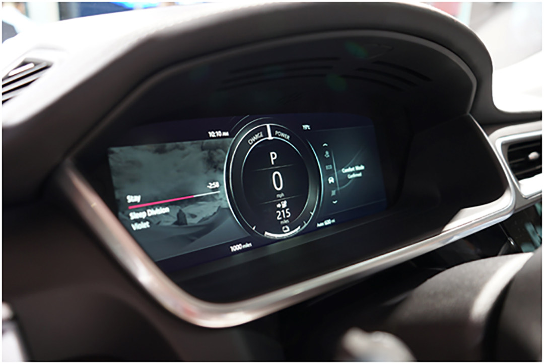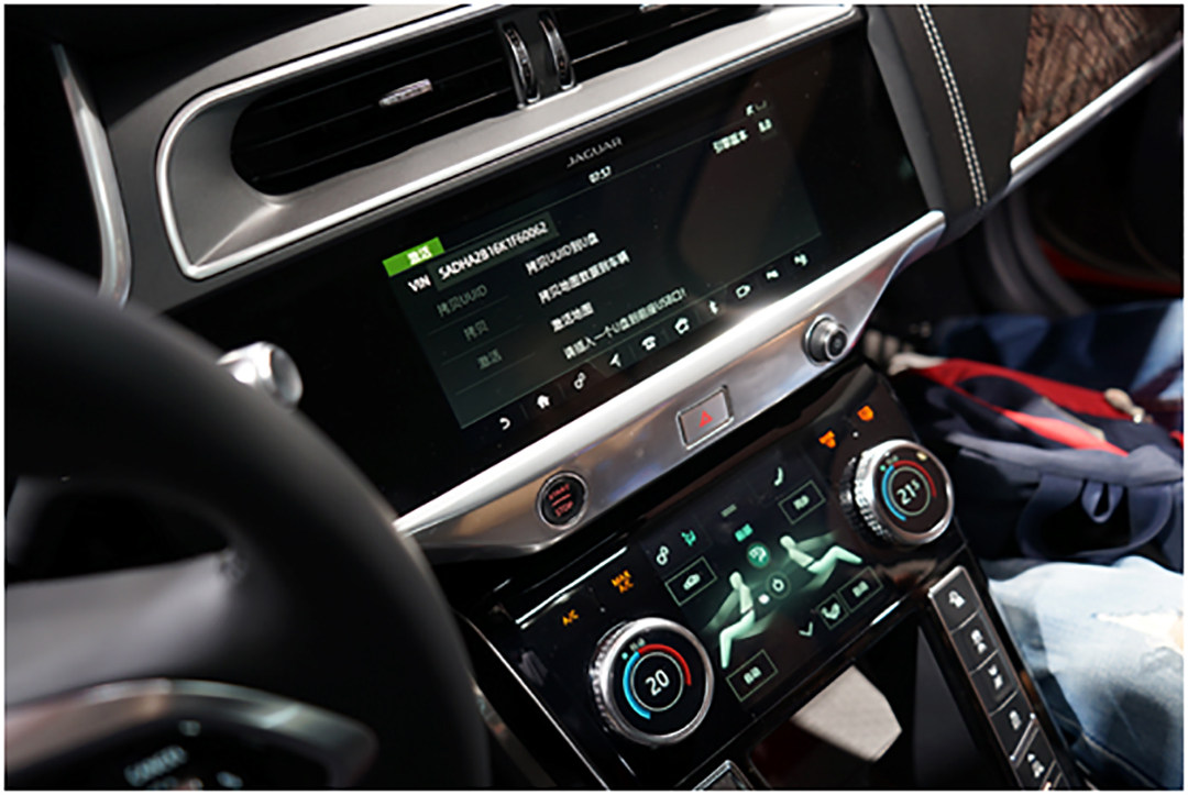 在这台车上,能见到许多惊艳的高科技装备,与奥迪不一样的做法是,I-PACE带来的科技感并不是故意通过大量缩减物理按键以及集成操作区域的俗套方法。走进驾驶舱会发现其颠覆性的内饰中控,采用了环抱式设计,可以看到液晶仪表盘、中控娱乐大屏与整体中控台无缝地融合在一起,而中控区域下半部分还能看到悬浮式设计,主要为空调以及音乐的控制,周边搭配实体旋钮和部分车辆控制按键。再者,大量的真皮覆盖加上实木的搭配,让内饰的氛围得到了点缀,一切都看起来极为自然、豪华和有生命。