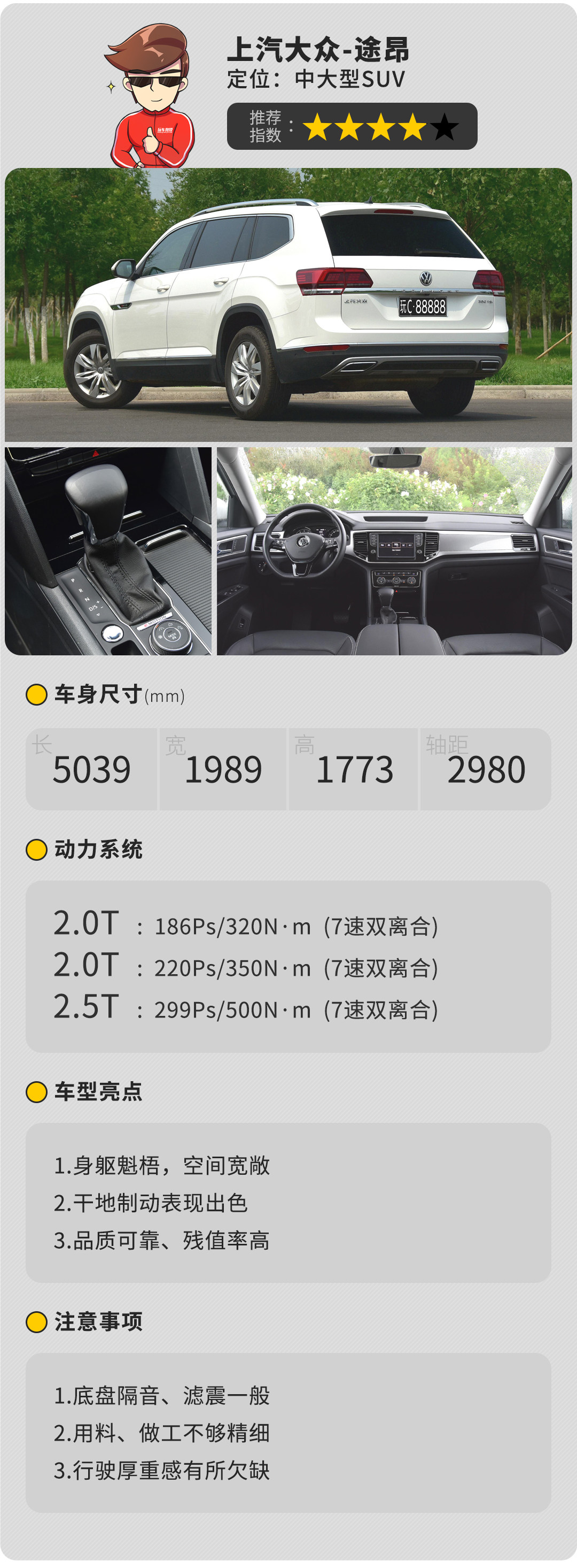 途昂可谓是大众MQB模块化平台的极致,其并非是一款全球化产品,而是一款专注于北美市场与中国市场的中大型SUV,两地消费者对“大”情有独钟,因而大众也毫不吝啬地拉皮加宽。魁梧礴然的身躯犹如一只公路猛犸,在路上可与公交司机平起平坐;威风凛凛的气势比起同门兄长途锐有过之而无不及。