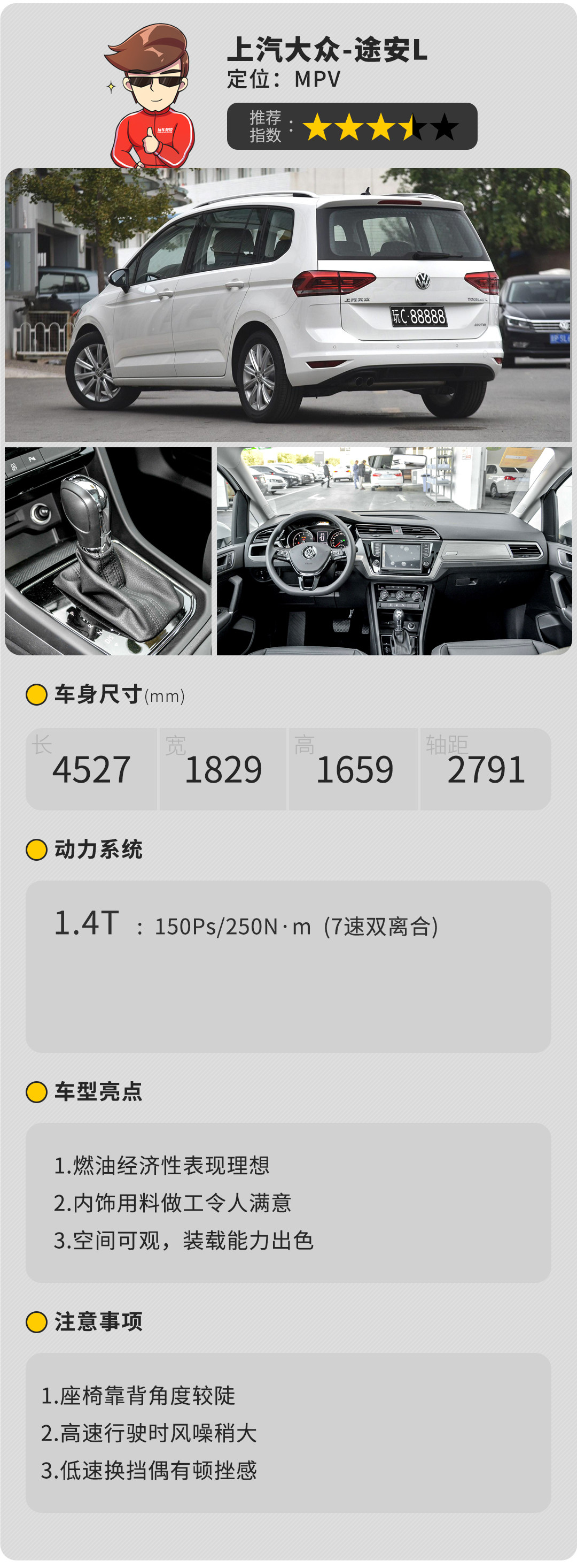这时,6座车型就凸显出了优势:不需2年一审;乘坐空间有保证;空间可灵活多变。有优势为何销量感人?原因在于此类车型较少,导致消费者购车观念中只有5座与7座车型。少并不代表没有,以下6座之选为您奉上。