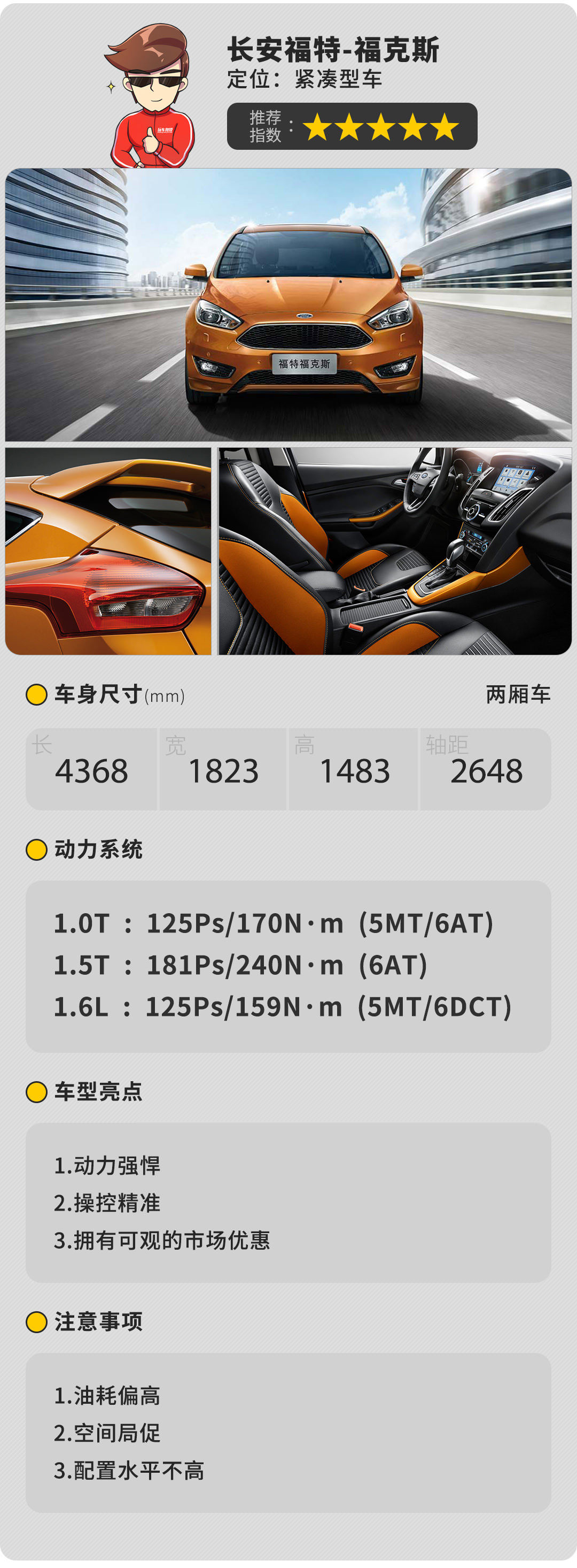 以上三款两厢车都拥有非常好的操控性,高尔夫表现更加均衡,福克斯的动力输出比较强悍,而昂克赛拉更注重对操控的追求,汽车作为我们在路上的好伴侣,何不选择一辆操控好的车型,享受驾驶给我们带来的乐趣呢?