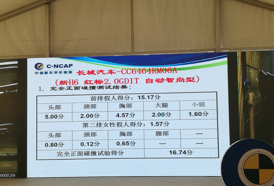 全新哈弗H6在C-NCAP中的各个细分项目均获得优秀评级,100%刚性壁和40%可变形壁碰撞得分分别为16.74分和16.66分,力压冠道的14.59分和14.8分,天逸C5的16.18分和16.24分,这个测试主要是为了验证车辆正面高速碰撞时对车内人员安全性的保护,而最终得出的结论是全新哈弗H6比合资品牌选手更强,更刚!