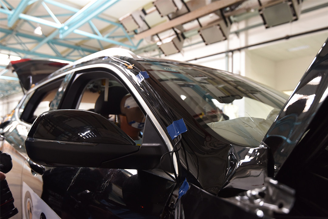 有了铠甲级安全系统,在车辆发生正面碰撞时,65%的高强度钢使得车身更加安全,A柱变形极小,保护乘员舱;预紧式安全带能够减少安全带和乘员之间的间隙,在发生碰撞时有效减少冲击力对乘员造成的伤害。主动式的气帘加上主动式头枕,能够降低事故中头部和颈椎的伤害。
