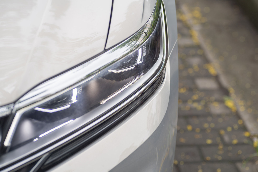 拿到辉昂的时候,它从车头到车尾的腰线吸引了我,别着急说漂亮。这就是制造工艺上对于精度高标准的体现,我很欣赏它那一对有着三维刻画效果的头灯,更加宽阔的进气格栅饰条在视觉上放大了车宽,大众风味的横扩式灯组也给人一种熟悉感。再加上下进气口的设计和中央的VW标识;时尚?这词不是用在中大型车上的。但你要说它无趣?这评价显然也不怎么中肯。毕竟看起来,它可是比帕萨特或者迈腾大气多了。