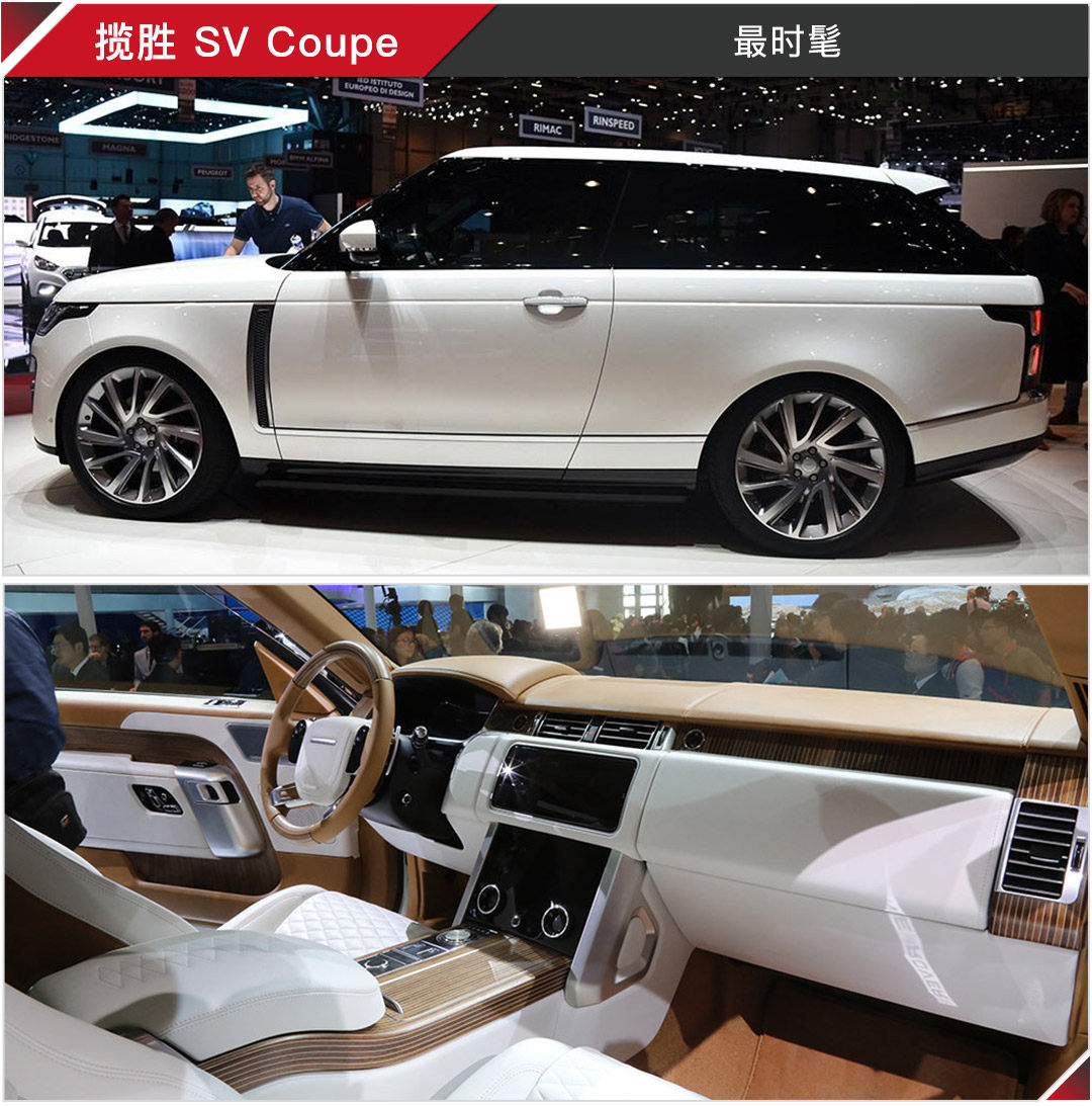 揽胜是典型的大老板车型,SV Coupe这款车只为致敬最初代的揽胜,双门、无边框车门、更低的车身姿态,霸气威武的揽胜也能如此时髦拉风。
