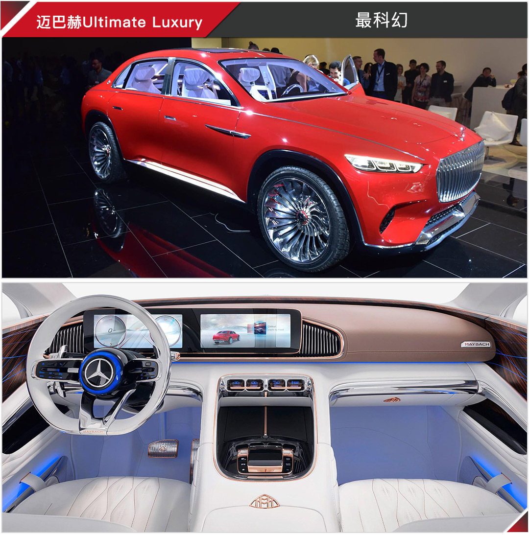 看车轮以上的部分就是轿车,车轮以下看着就是SUV,张扬夸张的前脸,超大轮库,奢华科幻的内饰,后排还可以摆放一套茶具,后窗和天窗都是分体式的,既天马行空又奢华至极。