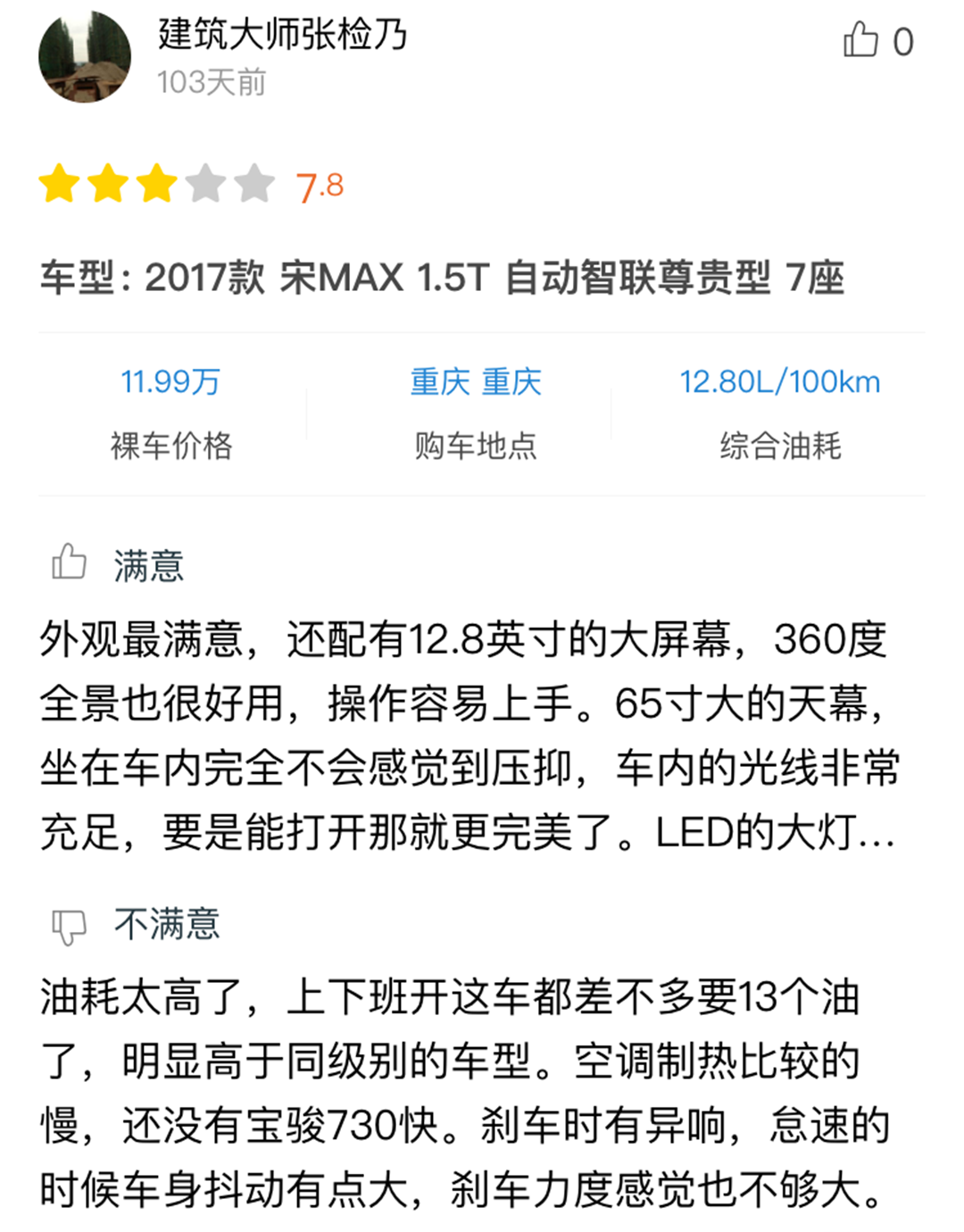 另外这些真实的车主详细口碑也证实了教授的看法: