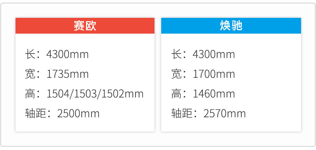 尺寸方面,两车的参数很相似,车身长度是一毛一样的。但轴距方面,焕驰要长70mm,所以预测后排乘坐表现应该有一点点优势,两车的车身尺寸都算是这个级别较为标准的水平,没有太多可圈可点的。