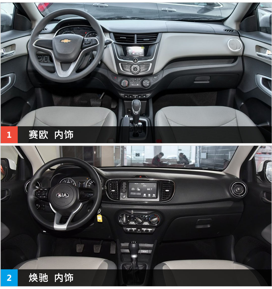 内饰设计,说什么追求质感,舒适性,精密性其实都有点过了,在这个级别更多的是追求便捷性,耐用性吧。首先赛欧的内饰设计.....其实还挺有层次感的,方向盘造型看上去也很舒服,中控就台的设计营造出几分怀抱式的氛围,我个人就对欧塞的内饰非常满意。而焕驰的内饰其实也还算不错,以“圆”为基础的设计挺多的,但是整体效果和赛欧还是有一定差距。
