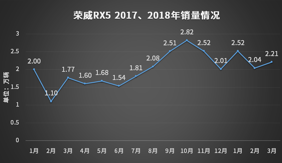 可以看出车主对荣威RX5还是比较肯定的,这点也可以从它每月高达2万左右的销量成绩中得到佐证: