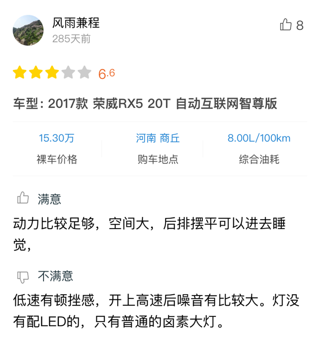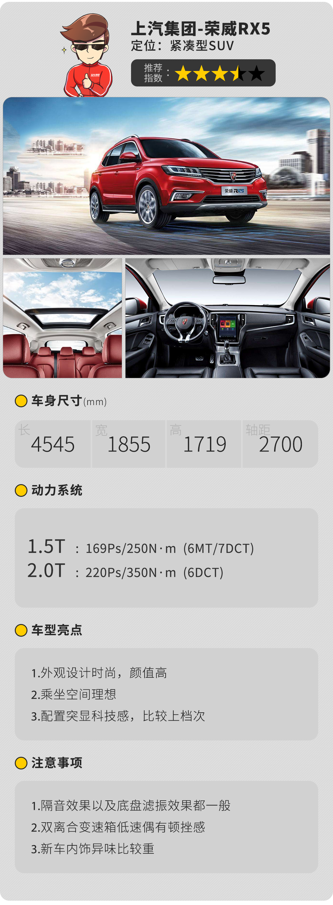 现在不少年轻家庭购车表示想要一辆颜值在线、好开智能的SUV,并且预算在十几万左右。教授在一堆合资车型里面找了一下,发现不是空间一般就是配置阵容不够强大,再看自主品牌,说到智能这个词,我想大家都会想到荣威RX5吧!那么这款车到底实力如何?车主们是这样评价的: