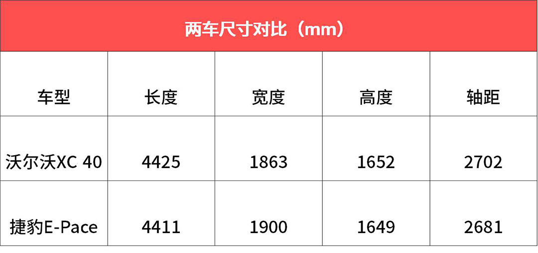 其实两款车型的空间表现区别不大,都是标准化的紧凑型SUV设定,后排空间称不上绝对宽裕但是日常出行还是可以满足,但是从车厢内部设计来看,沃尔沃XC40的车厢内部氛围更加温馨居家一些,四平八稳的设计方式更符合大多数家庭用户的需求,而E-Pace那类似F-type的车厢虽然战斗氛围十足,但如果放在家用层面难免显得有些过于浮躁。