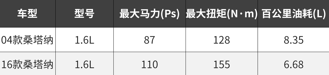 从上表可以清晰看到,现款桑塔纳相比老款在发动机动力面已然有了较大幅度的提升。1.6L车型现款相比老款的动力,提升了超过25%。不仅动力有所提升,油耗的降幅还颇为明显。
