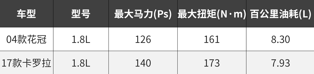 从上表能看到,同是1.8L车型,现款卡罗拉相比老花冠大概能有10%左右的动力提升,尽管提升幅度不是很大,但对于丰田这类保守的车企来说,已经是较为可观的数字。更重要的是,油耗方面的降幅还算可以。