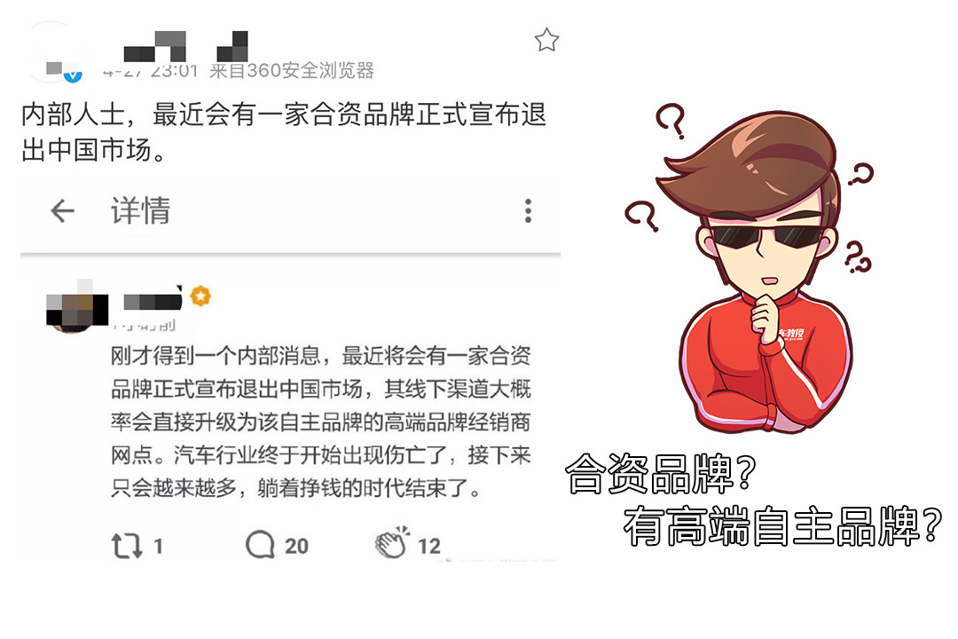 前些天,网上有据称是内部人士发布消息,称最近将会有一家合资品牌退出中国市场,旗下自主高端品牌大概率会直接升级为经销商网点。