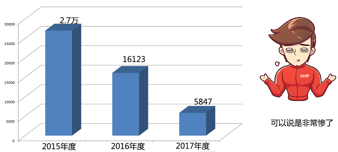 没有最惨,只有更惨,销量垫底的路上,纳智捷有观致的陪伴,观致公布的2015年销量数据为1.4万辆,2016年有所增长,卖到了2.4万辆,然而好景不长,去年销量仅剩1.5万,这一跌不知道何时才能爬起来。