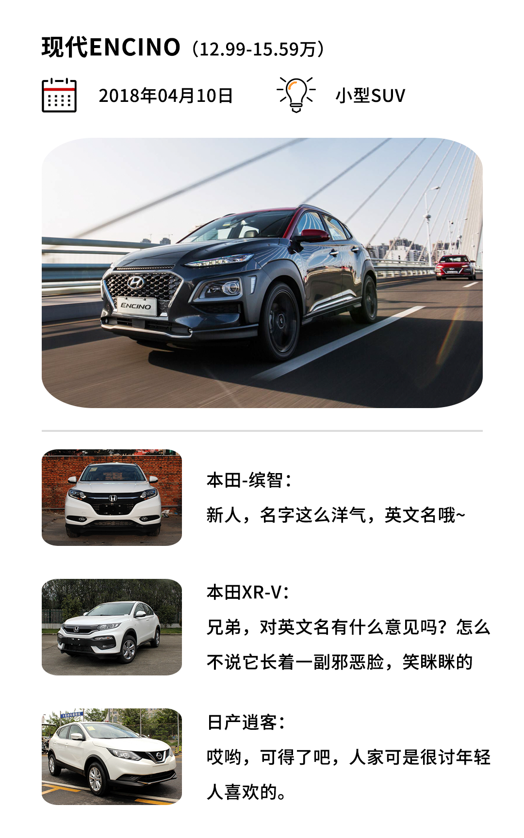 现代ENCINO是一款以性能著称的小型SUV,搭载1.6T涡轮增压发动机和双离合器变速箱作为动力总成,177匹马力的账面参数也是十分诱人,配合上个性张扬的外观设计和尚且不贵的售价,现代ENCINO要成为未来年轻人的首选车型的决心显而易见。