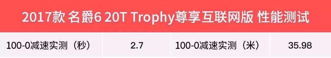 跑得快,还得刹得住,实测中名爵6的100-0km/h制动距离为35.98米,且在连续三次测试中都未出现明显的热衰减现象,且全程不见轮胎抱死的情况,可见名爵6的制动性能还是比较优秀且可靠的。