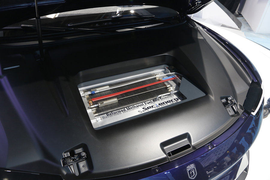 这款RG纯电动跑车不同于常见纯电动车的是,它虽然名为“电动”,其实采用的是燃料电池技术,以甲醇为原料在线制氢并通过燃料电池堆中的氢氧反应来获取电能,因此其最高1200km的续航水平相比当下的锂电池纯电动汽车可是有着压倒性的优势。