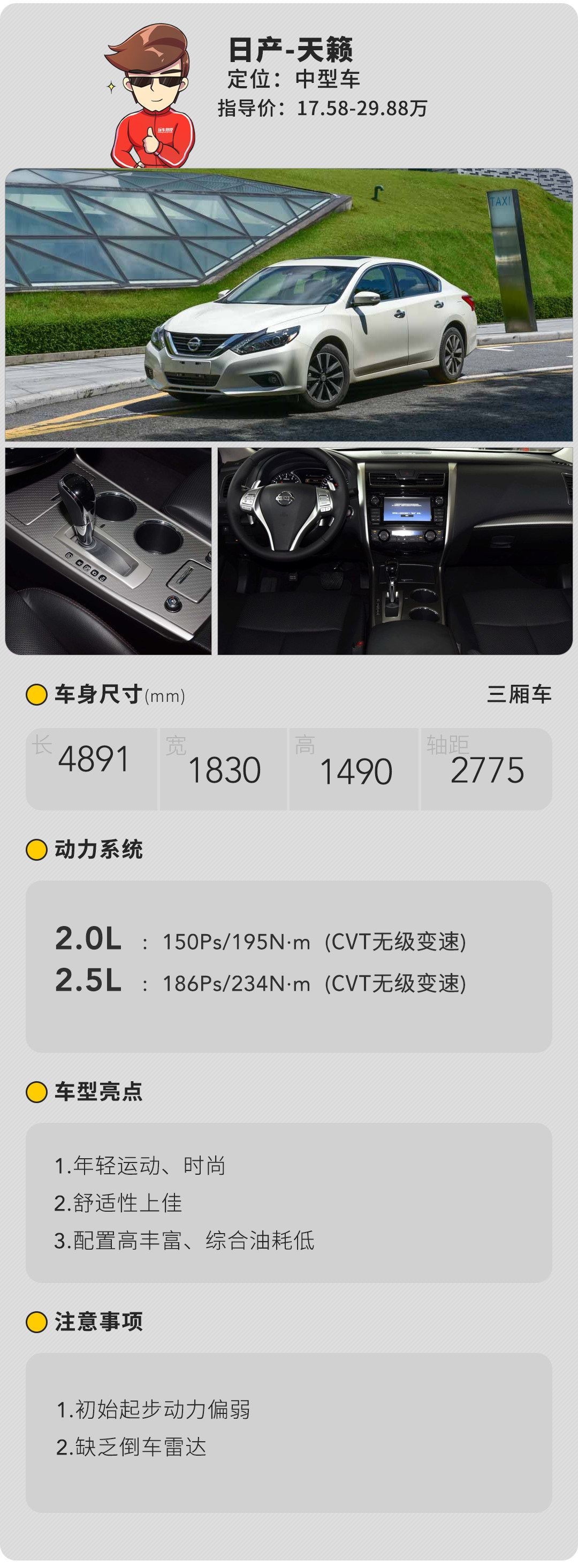 教授点评:在纽约车展上全新的Altima(天籁)正式亮相,不过目前尚未引入国内,但就目前国内天籁来看,性价比也是非常的高,市场优惠也是非常的给力。新款的Altima在各方面都进行了相应升级,外观更为年轻运动化,配置也充满黑科技,素有大沙发之称的座椅舒适性也是绝佳,而最大的变化还是在于其2.5L的发动机,匹配模拟7挡CVT变速箱,不仅动力有劲,换挡也是又快又平顺。相信新款天籁若能引入国内,凭借在消费者中的良好口碑和雄厚的硬实力,在合资中级车中定会有不错的竞争优势。