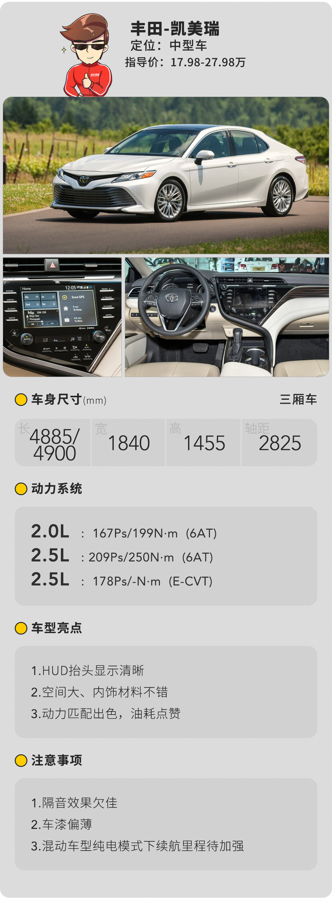 教授点评:八代凯美瑞基于全新的TNGA平台打造,从内到外都能给人一股全新的感受,完全没有老款车的味道,而操控和运动性也成为此代凯美瑞的代名词。至于在性价比方面它也做到了同级之最,无论是配置还是其它方面表现都很符合它的售价。八代凯美瑞全新的2.5L引擎的压缩比可达13.0:1,将热效率提高到40%,对燃油经济性有很大的提升,动力性能表现也是更为有劲,匹配8AT的变速箱,换挡快且顺,可以说,这两大核心部件是此次换代凯美瑞的精华所在。