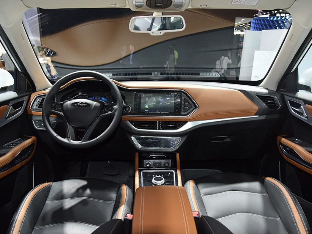 内饰则采用了大面积皮革包裹,搭载液晶仪表盘以及8英寸超大显示屏,其整体采用黑棕搭配的内饰主题色调,除了采用了旋钮式电子换挡机构,其余部分与燃油版保持一致。但方向盘和仪表台等处辅以哑光镀铬饰条,加上仿皮+缝线材质的运用,为新车带来了精致的档次感。